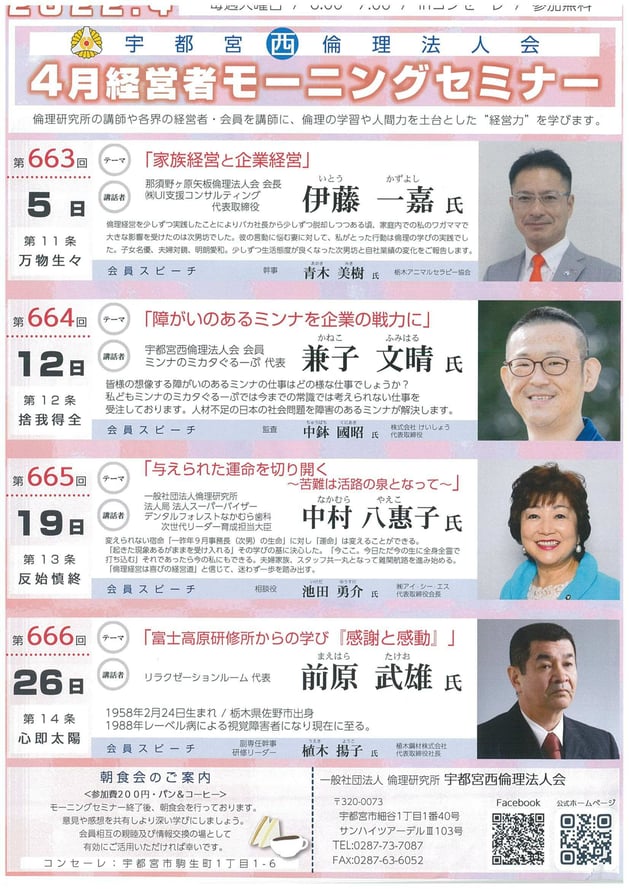 第665回 モーニグセミナー 6:00~7:00