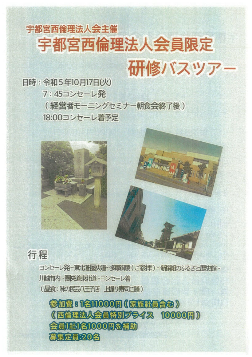 研修バスツアー 令和5年(2023)10月17日(火)